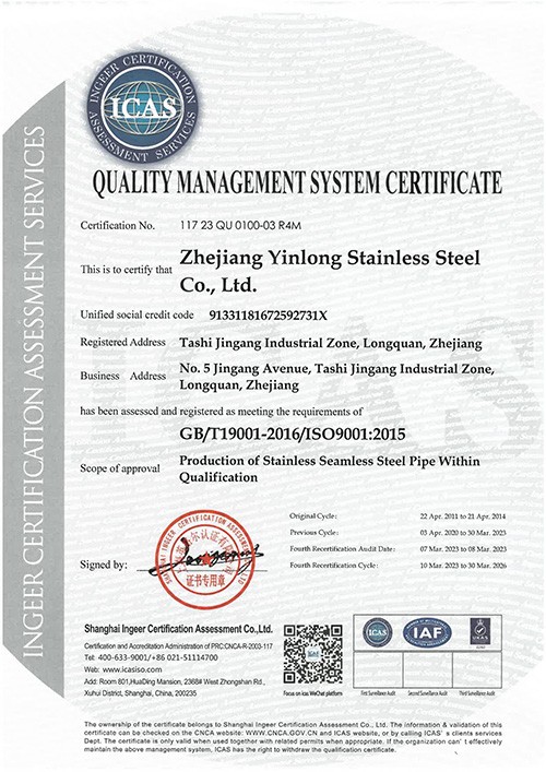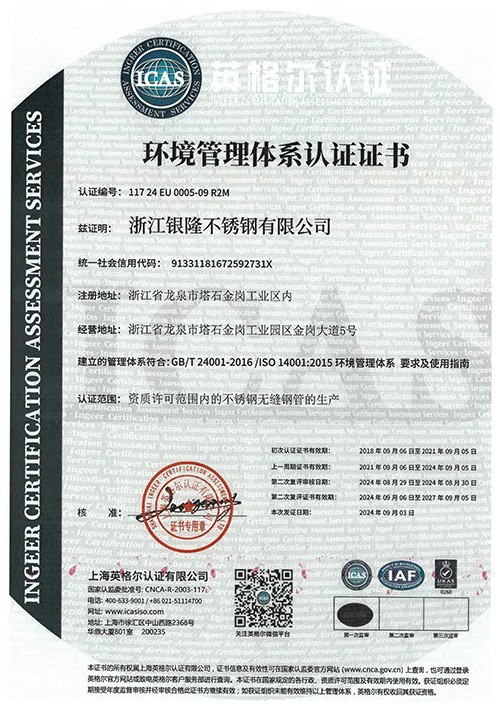 浙江銀隆不銹鋼有限公司創始于2006年,是一家專業生產不銹鋼無縫管的企業。公司位于浙江麗水市,企業注冊總資金貳億壹仟柒佰肆拾玖萬元,擁有4家工廠,占地總面積11萬平方米,職工530人,年產不銹鋼無縫管5萬噸。
